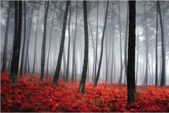 当面对多条竖线时,例如树林、高楼丛林等,可以采用对称排列透视、多排透视等表现方式,都能让画面产生意想不到的效果。如下图作品便是采用此种表达方式。
