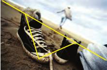 让地平线倾斜,同时让两只鞋子与地平线形成三角形。