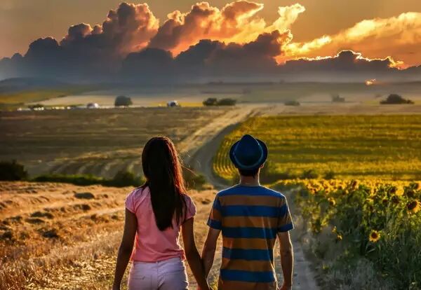 3、男生从背后抱住或是搂住女生,两人望向同一个地方