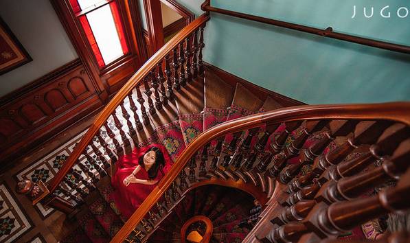 用城堡里的旋转楼梯作为引导线,将观者视线引导到人物。