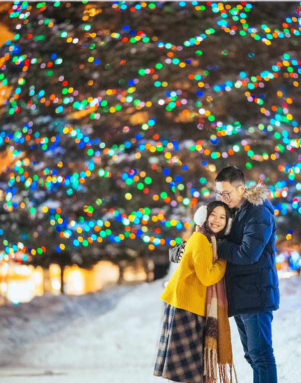 大光圈有什么用?大光圈拍摄夜间人像可以拍出绚烂的光斑。