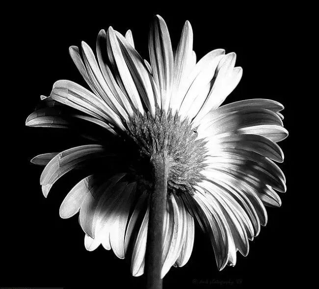 因为在这片叶子的后面放了一个小灯,使得从叶子的茎脉从正面看起来清晰分明,再加上后期黑白的处理,更加突出了这种明暗的对比和黑白灰的层次感。