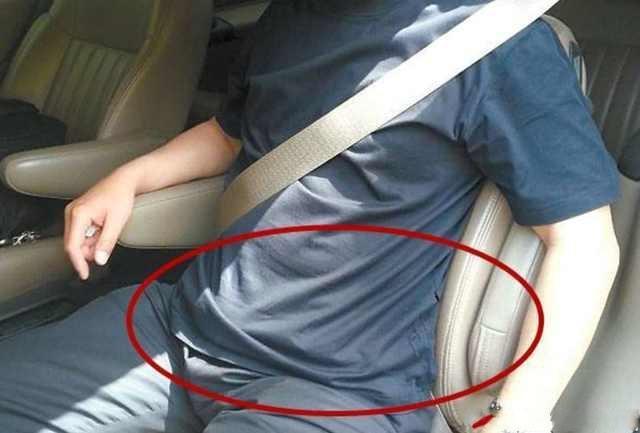 上图的这位车主的做法就不可取。固然外表上系了平安带,但是在右上方的位置却把平安带固定成了死结,这样的做法完整限制住了平安带的收缩长度,就发挥不了维护作用,如今的平安带限位器也是这种原理。
