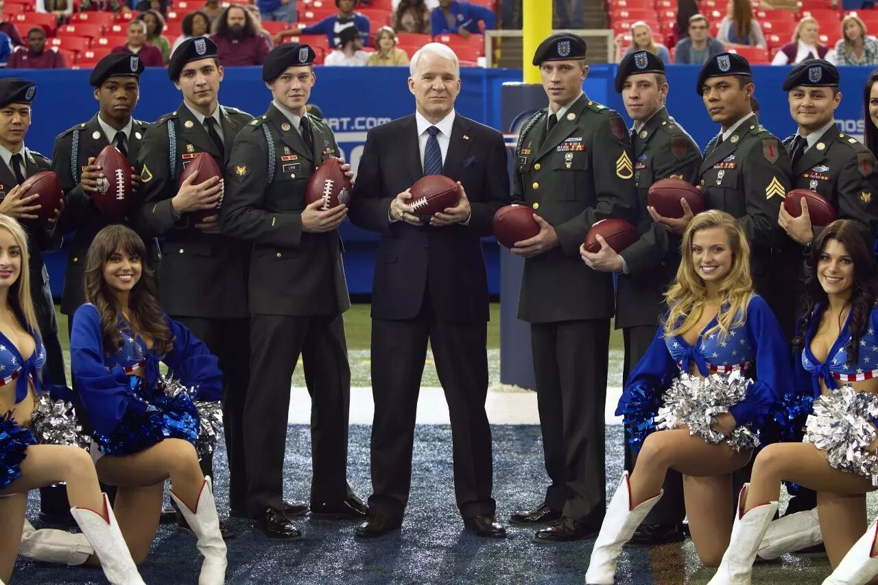 ④最后一点:李安的新作确实在制造一场“浸入式体验”。其中最明显的特征是,传统电影为了不打破观众的偷窥幻觉,往往不愿让片中角色直视镜头。但《比利·林恩》中的多个角色:克里斯汀·斯图尔特饰演的比利姐姐、史蒂夫·马丁饰演的橄榄球队老板、克里斯·塔克饰演的电影经纪人,和向比利表达敬意的橄榄球观众,都有着直视摄影机向镜头说话的时刻。这种美学风格会让我们想到RPG(角色扮演式)电脑游戏,摄影机在这里不再代表一个中性的旁观视点,而是将我们和比利的视角合二为一,让我们看到比利眼中的一切。