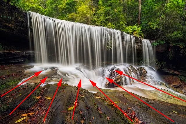对角线富于动感,使画面有活力,容易产生线条的汇聚趋势,吸引人的视线,达到突出主体的效果。把主题安排在对角线上,能有效利用画面对角线的长度,达到纵深效果和立体效果,常用于拍摄水流,瀑布,建筑,道路等。