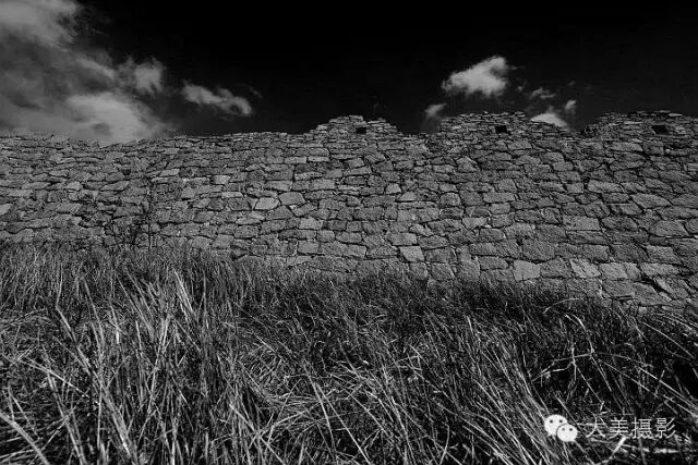 三分法构图,荒凉的草,坚硬的残墙顽石,天空压抑,构成了画面苍凉之气,但云中的静谧,荒凉的沦桑,寻找着历史留下的证据。