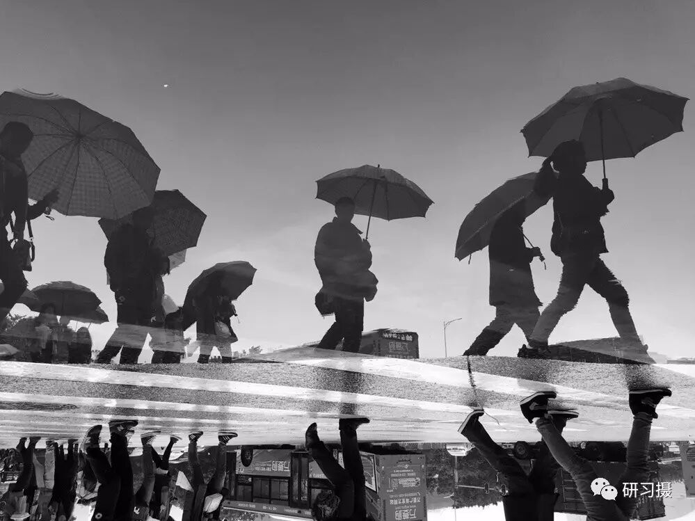 这张照片是拍摄在雨后,路面积水,在等红绿灯时,手机贴在地面上拍的,后期再反转一下所呈现出来的效果,带给我们不同的视觉感受。