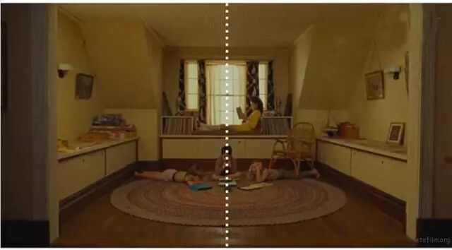 ———————————————而韦斯安德森则是出了名的对称构图的狂热分子,不像库布里克热衷于单点透视,他的电影画面大多数都很「平」,好像一个长卷中截取的某一个画面。