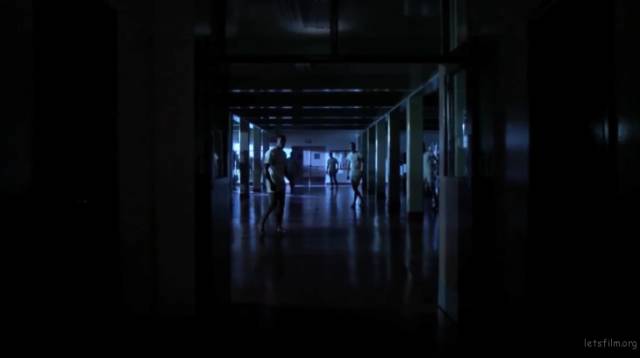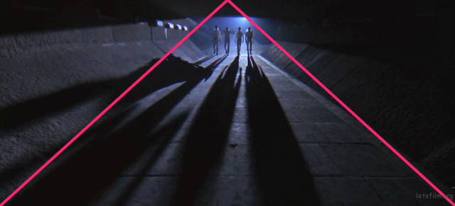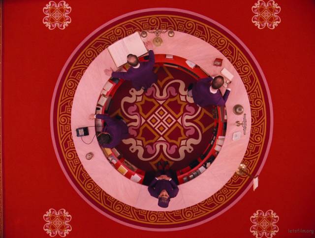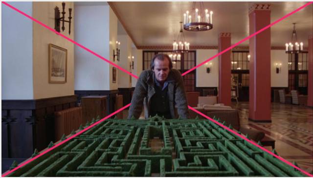 另外这种中心对称构图都需要一个「大」而「平」的背景所支撑,如果在一个小场景下很容易会被周围的引导线所左右,就变成了库布里克那样的单点透视了。