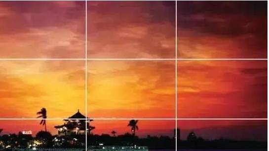 在风景拍摄中使用九宫格构图法,可以将拍摄主体放到最适合的位置,可以确定天空和地面的位置。