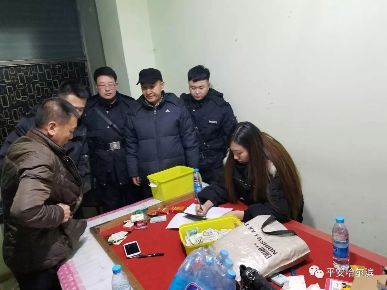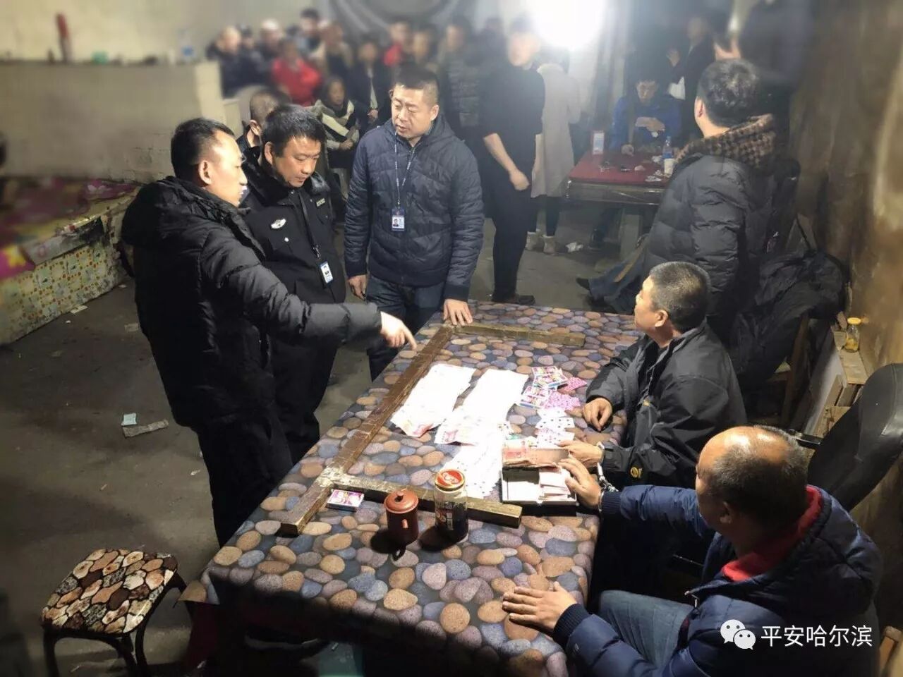 ——12月2日,,在道里区迎宾小区居民楼内查处一聚众赌博窝点,现场抓获涉赌人员51人,扣押涉案赌资6万余元。