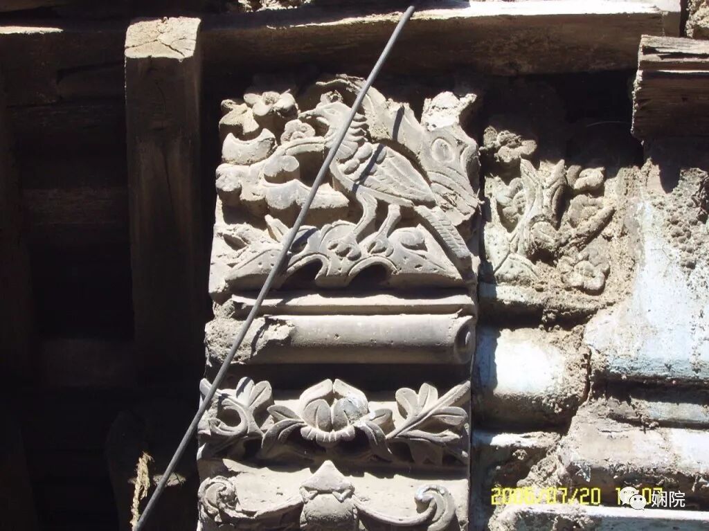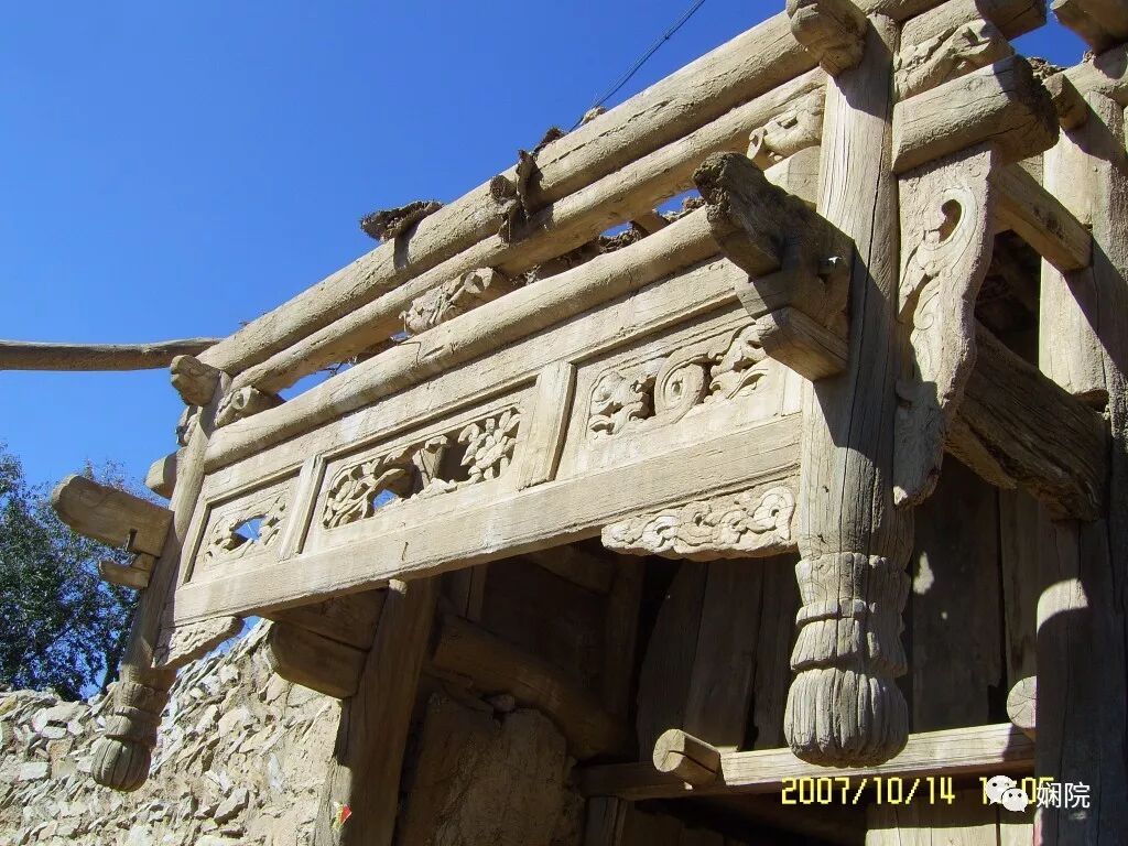 这是站在楼上以后我们来看堡子,远处呢其实就这张图的远处,就是,已经是内蒙古自治区了,就是一眼就看到了内蒙古。然后如果当时那个位置我们再往右看,就已经就到了河北,就是这些村庄里头的老房子,这是残留的这个结构上的部件,像这些砖雕也好,木雕也好,它在那个地方很多很多,那么这种多呢,它带给我一种思考。就是说呢我们来认识这个长城呢,有一个,首先就是,我们不是一个狭义的说是就看长城论长城,而是说从文化这个角度上来说,它是一个体系,它长城自己是一个有机的一个整体,那么服务于这些有机的整体的人,以及他们的这个居住等等,所有这些个地方就共同形成了一个,就是看上去它的基因是军事基因,但是实际上它是一个,非常丰富的非常立体的非常全面的,一个文化宝库,关于这一点只是物质层面的。