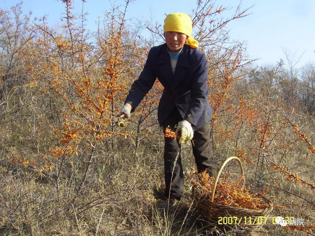 这就是长城边上的农民,他们就是这样生活的,这是他们在给这个汇源果汁砍沙棘,都是纯天然的,然后那个连枝,他们就是把那个树枝全部都砍下来,当地农民呢就在长城边上就采这个东西,在山西长城的沿线。