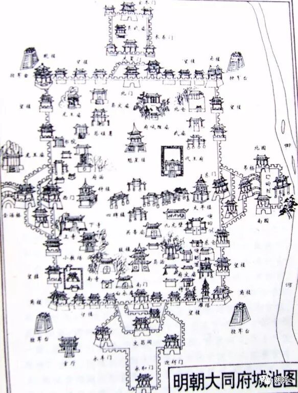 这是我们大同镇的图,这幅图呢,它是清代的资料上的,那么清代的这个城池和明代是延续下来的。大同镇的这个城池呢,它是一个最高的指挥所,就是正城 。