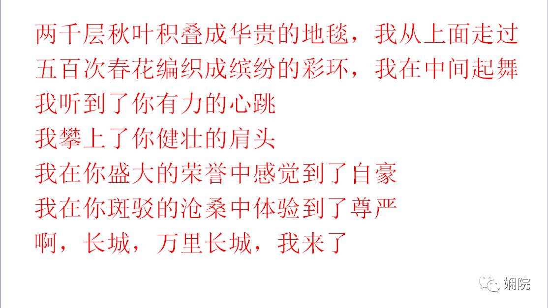 大家好,我来自大同市,是一个资深的长城爱好者。我就是用这个诗的四节来讲我的故事,来讲我和长城的故事。