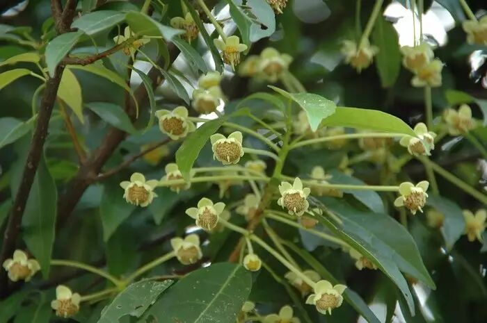 假如没计划或者没条件去看的话,也可以看看杜英科其他植物的花来弥补一下遗憾。杜英科的花朵一大半都是类似的风格:挂满一树的清秀小花,下垂的花梗,带有缺刻的花瓣,然后加上各类仙气缥缈的配色。身边比较容易见到的就是常用作行道树的秃瓣杜英或者水石榕。