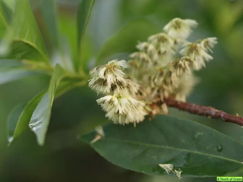 主要用作彩叶植物观赏的秃瓣杜英,会有随机位置的叶子变成红色十分好玩,花则十分的小。图片:atouchofgreen-gardenwebshop.nl