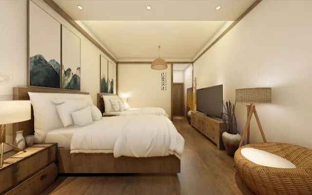 装修偏复古,有种民国即视感,可以拍旗袍、也可以拍复古私房,室内拍摄较为单调,可以在镜头添加凡士林,为画面加些效果。建议选择二楼的房间拍摄,两间大床房没有阳光进入,公共浴室和与其平行的多人间下午3点后有充足的阳光。