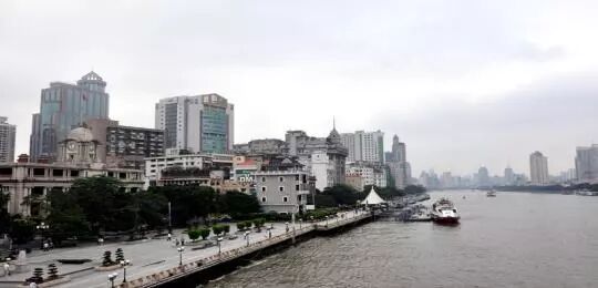 人民南路的新华大酒店处有人行立交桥,而沿江西路靠近长堤大马路有爱群大酒店,石质结构的老式骑楼建筑,都是广州沿江标志性的老建筑。