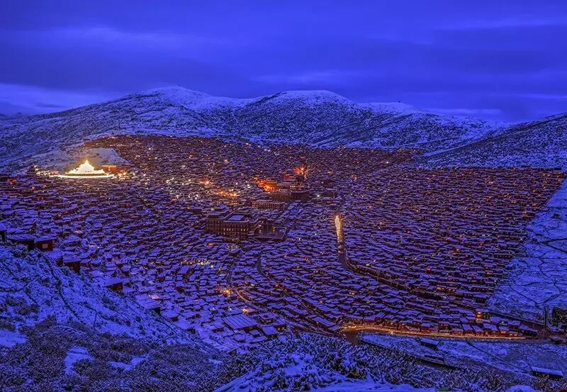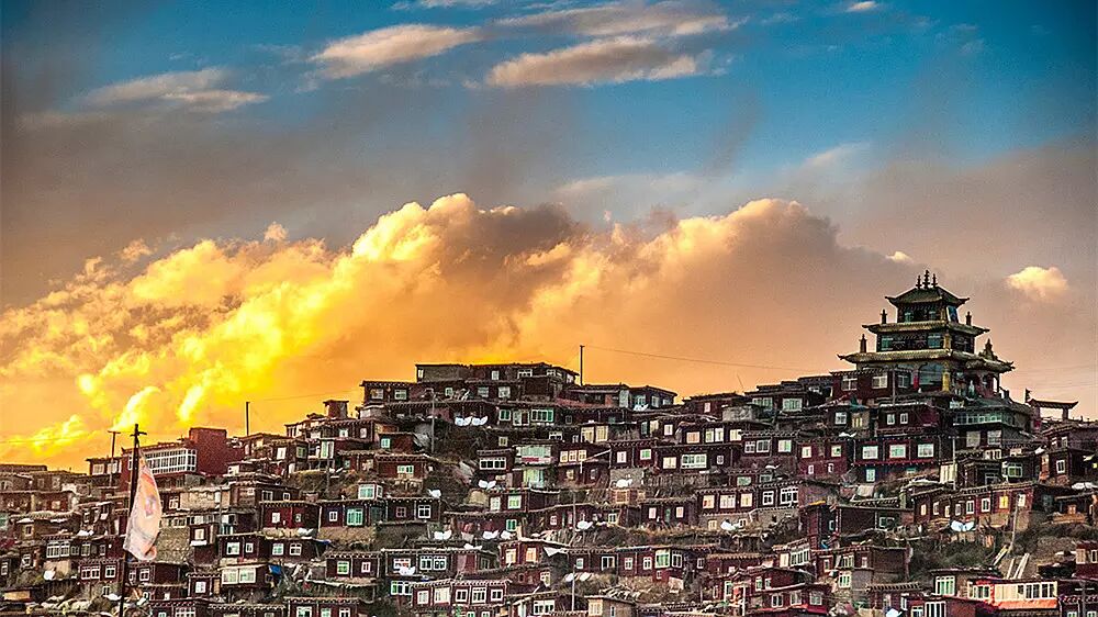 行程安排:清晨7点从观音桥出发,前往色达五明佛学院。一路美景不断,清晨阳光下黑色牦牛与白色羊群若隐若现,微风吹来云朵般柔和的牧歌。抵达色达安排住宿后,前往天葬台天葬台近观【天葬】,这是对心灵的又一次洗涤。生于自然,还于自然。没有灵魂,人终归只是一副皮囊。看天葬时注意围观距离,胆小的同学请在后排瞭望,一定要尊重当地的民风民俗,避免不必要的小摩擦。进入学院大门,沿路可以看到散布的红色屋子,【五明佛学院】是如今世界上最大的藏传佛学院。转过弯,银岭碧草间,数千间赫红色僧舍浮现在眼前。金色光辉洒下来,整面山的木屋仿佛燃烧在佛光中。金碧辉煌佛的学院、漫山遍野的红房子、裹着红袍的僧人、彩色金幡、用相机记录这里的一切,佛学院的每个角落你都可以去探访,在这里用你自己的方式续写与他们的缘。最后可以徒步到佛学院最高的山峰,在佛学院内最高的山峰上有一个巨大的、金碧辉煌的坛城—全世界唯一一个可以转绕的【坛城】。坛城一共有三层,可以进行转圈祈福。坛城边的空地上,永远有磕长头的虔诚信徒。傍晚一起徒步到佛学院山顶,站在那里聆听山间的阵阵梵音,静静的等候着日落的降临。色达的夜景非常漂亮,此时浮现在你眼前的只有震撼两个字,一定不会令你失望。