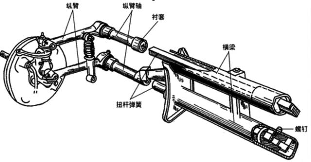 单纵臂式独立悬架也叫做纵臂扭转梁式独立悬架。这种悬架主要用于后轮,而且属于比较过时的技术,富康、老桑塔纳、老捷达的后悬架都采用的是这种结构。它由一根整体的V形断面横梁和两端的纵臂组成后轴体。纵臂前端通过橡胶和金属支承与车身作铰接式连接,纵臂后端与轮毂、减振器相连。