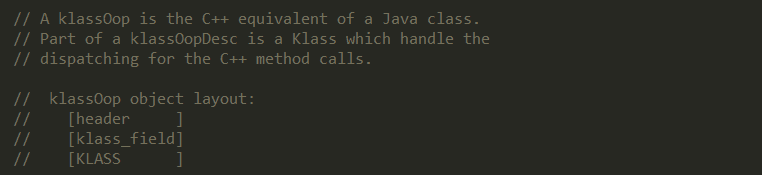 klassOop相当于Java中的class,一个klassOop对象包含header、klass_field和Klass。