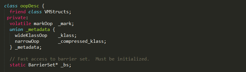 oopDesc对象包含两部分数据:_mark 和 _metadata;