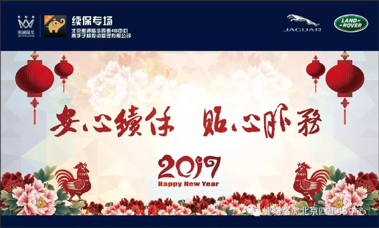 2017年1月17日-18日,捷豹路虎北京惠通陆华四惠4S中心新年续保专场活动即将震撼开幕!给您提供了一个好的续保选择!来这里续保,免去您来回奔波之苦,出险后从定损理赔到修复均可享受一站式的高品质服务,活动当天除超值优惠外,还有多种礼品等您赢取,更可享受免费项目赠送!真正享受到定损更贴心,维修更放心,服务更省心,未来更安心!