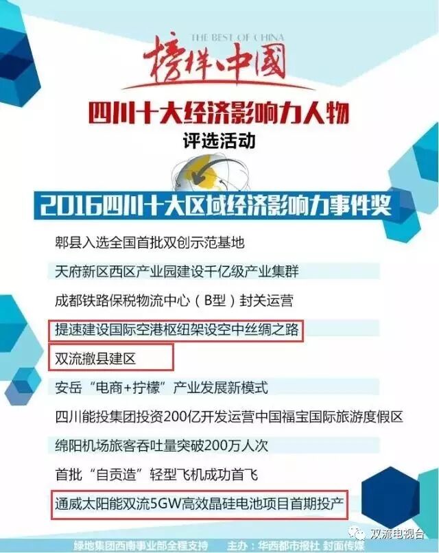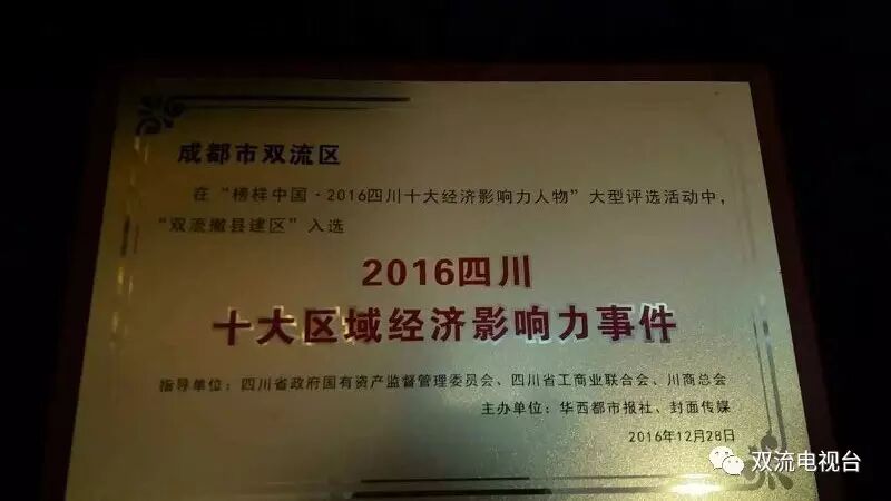 其中双流区在2016年四川十大区域经济影响力事件评选中荣获三项奖项