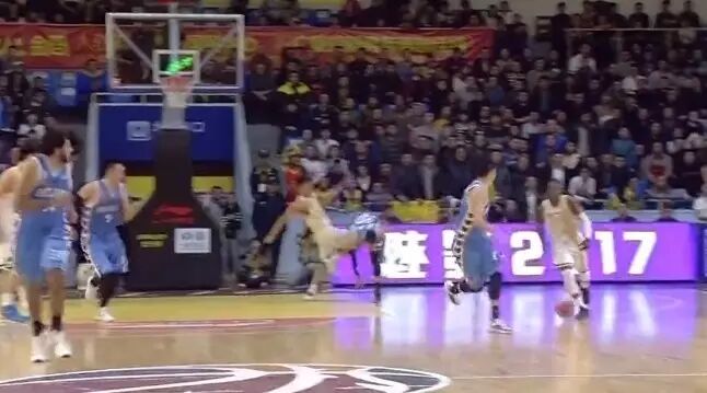 小川遭黑手,准确说是林志杰的黑手,这已经不是第一次了。2016年1月24日,首钢同样做客广厦主场,开场不到一分钟,林志杰和小川纠缠在一起,前者对小川就是一记左勾拳,不知道台湾人林志杰是不是周杰伦的歌听多了。