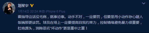 其实刘星宇的初衷是好,所有人也都知道赛场上的骂声是不文明的,如果上一次说北京时,刘星宇能够稍微平静一些,大部分北京球迷还是可以接受的。