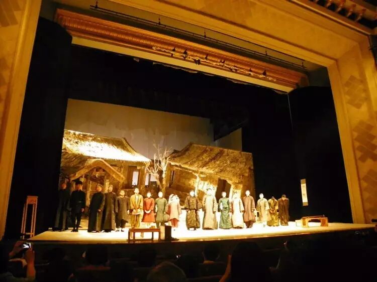 提前半小时进入剧场,老舍、曹禺和另外一位艺术家的雕像(好像是郭沫若),迎接着前来的观众。演出厅和其他地方并无二致,甚至不一定有中原文化宫内部大。由于中间有机位准备拍摄,略微影响我的视线,工作人员还把我和邻座的一对老夫妻,从十八排调到了第七排,真算是“因祸得福”。