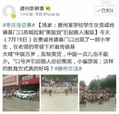 不过玩个手机报个警都是小儿科。看看山东滕州的小学生吧,竟然组团儿围堵肯德基。