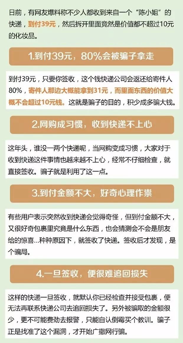 除了智商碾压。骗子要么吓唬你,要么诱惑你。比如最近“陈小姐”的快递就有很多人中招。陈小姐和包小姐都是骗人的,她俩都不是没有故事的女同学。