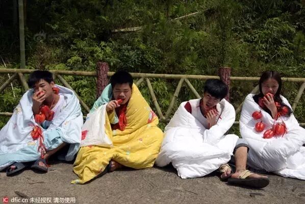 比如说前几天,一群大学生前往广东连山金子山,在38℃的天气里进行一场裹棉被吃辣椒的比赛活动,比比谁更不怕热。他们表示希望通过此次活动,呼吁城市里的人们多多去大自然里去避暑,少用空调,节省能源,减少排放。