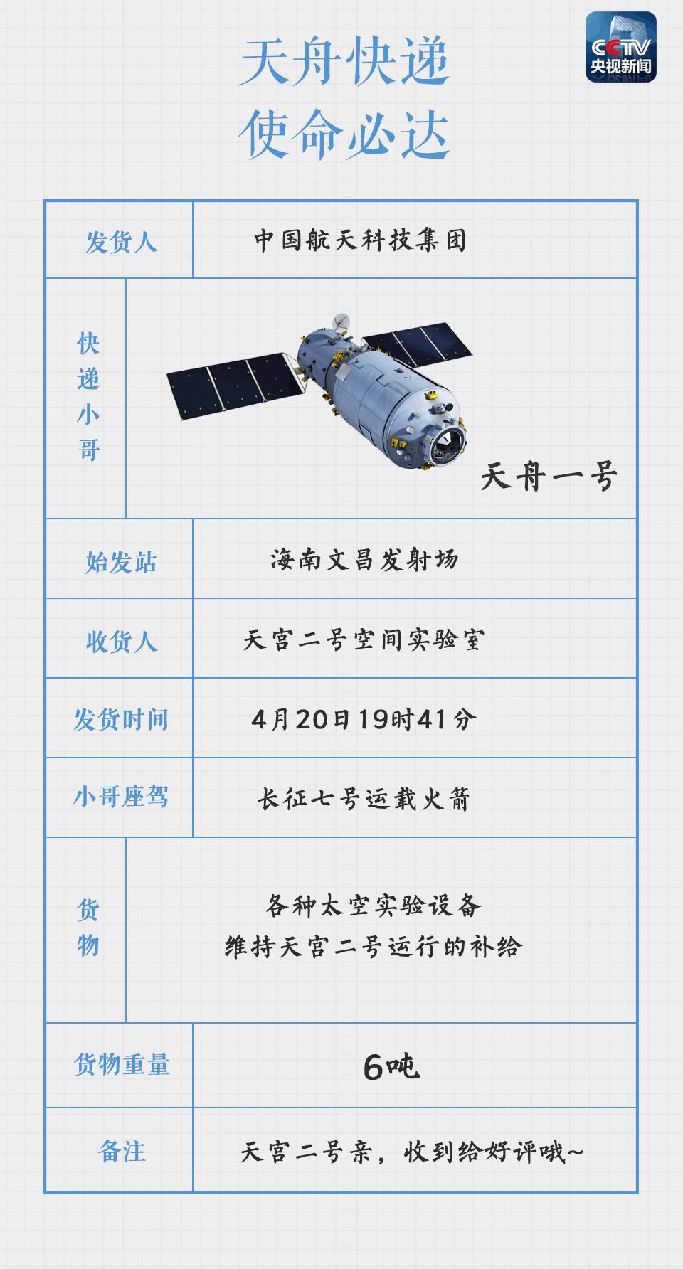 因为天舟一号“只运货、不送人”,它被一些媒体形象地称为“快递小哥”。我们就以快递单的形式来介绍一下“小哥”此行的任务。