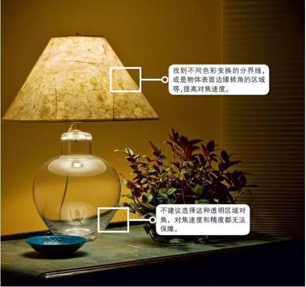 如果现场的光线较暗的话,除了可以利用相机的对焦辅助灯外,用户还可以使用电筒或是手机屏幕来照射静物,增加静物表面亮度,提高对焦速度。另外现在的数码单反相机一般都有对焦锁定的功能,因此可以先执行对焦操作,对好焦,执行对焦锁定功能,再重新构图进行拍摄。