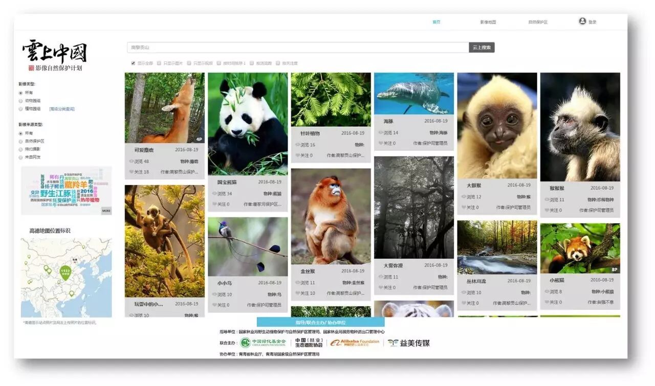 ▲ 由阿里巴巴公益基金会支持的“云上中国自然影像数据分享平台”