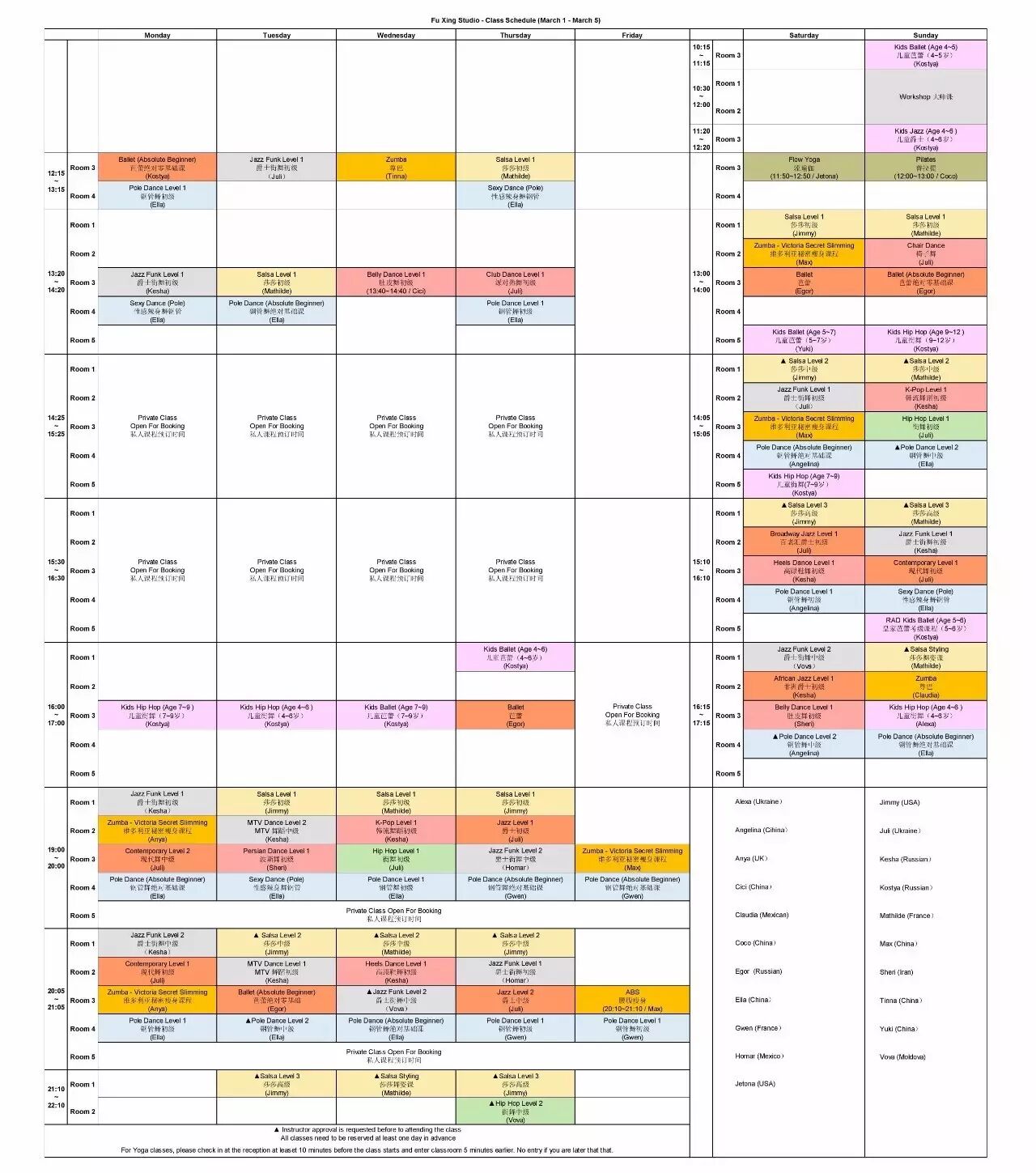 Please be noted that there are some changes in the class schedule of Fu Xing Studio as below, which runs from March 1st. 复兴分部的课程将在3月1日起以下更新和调整: