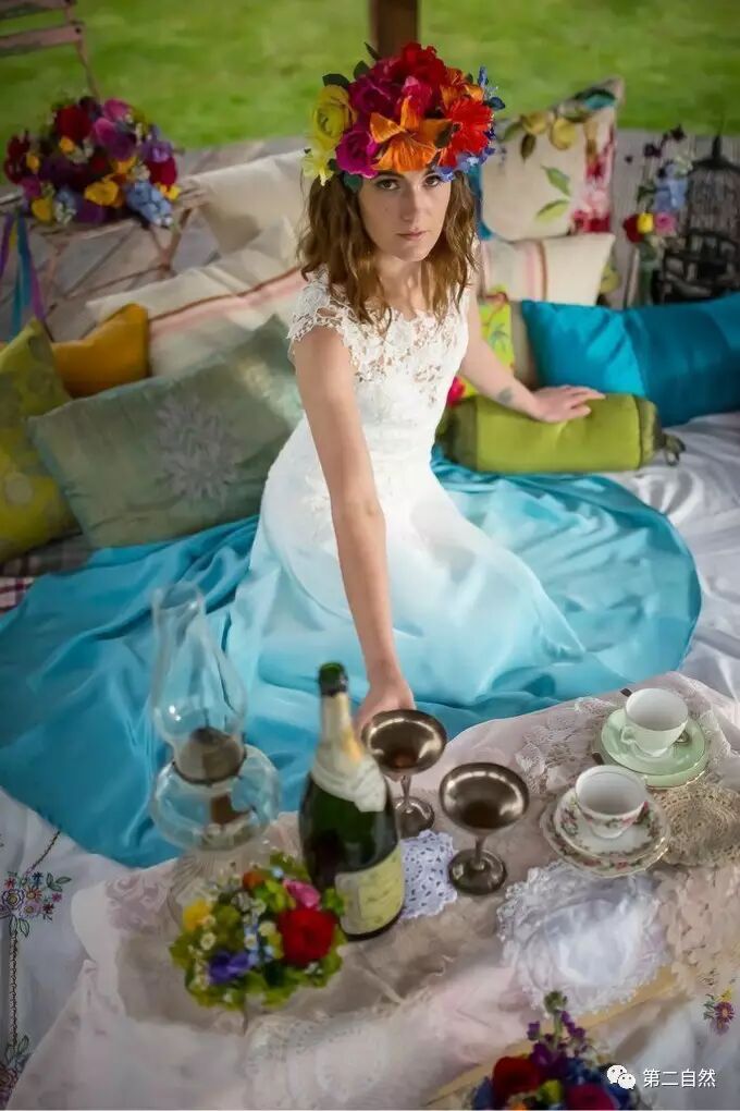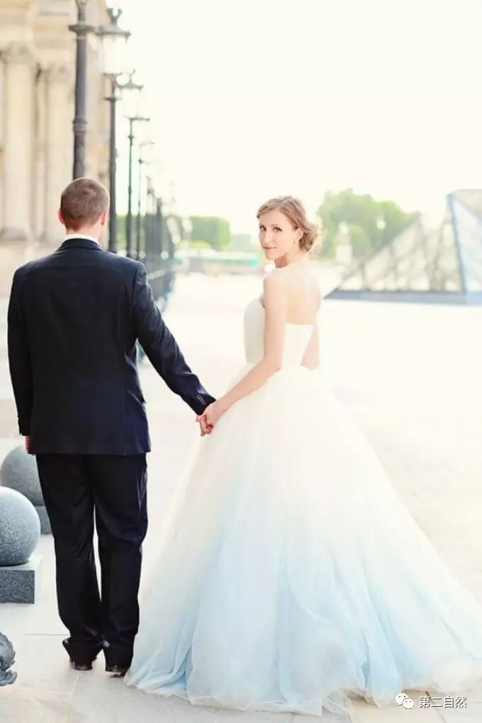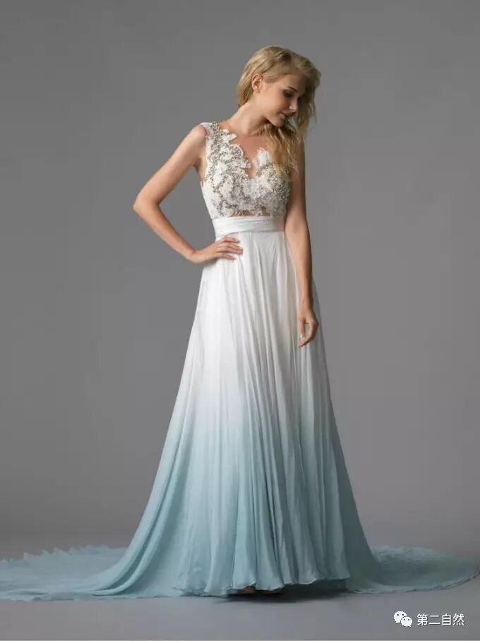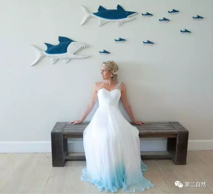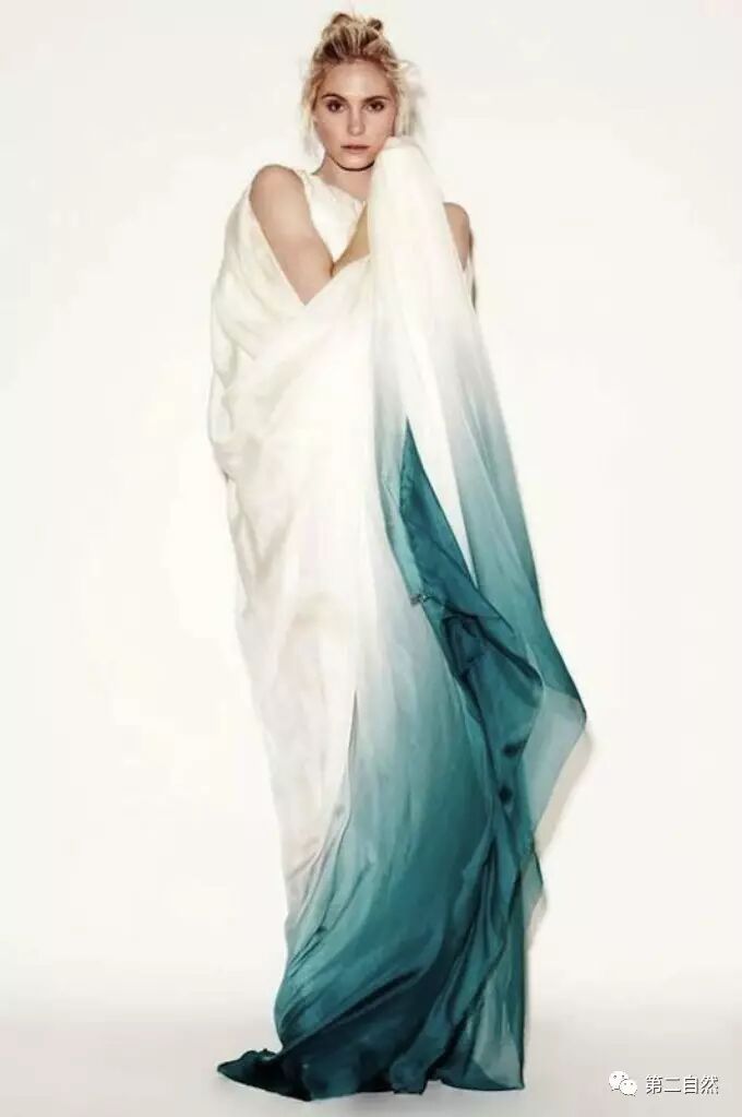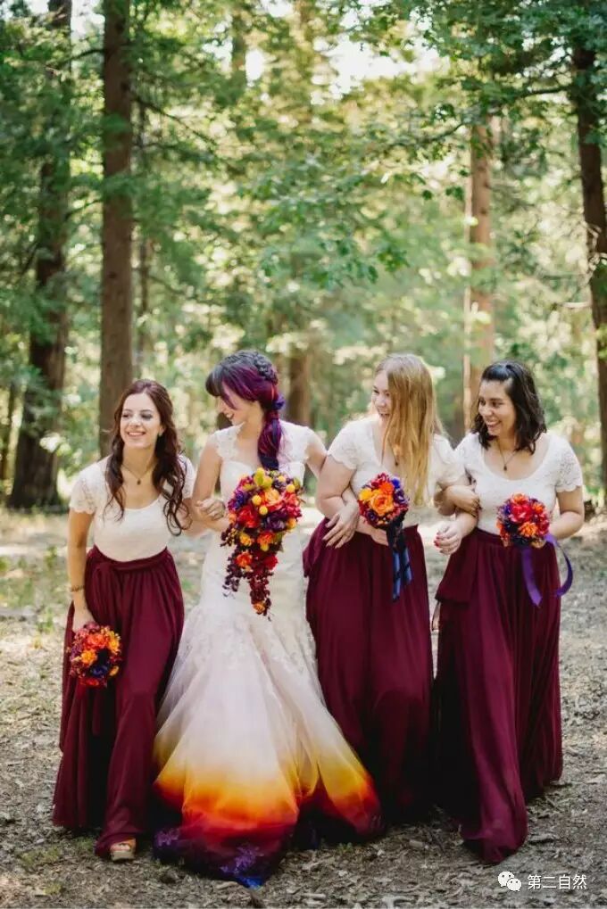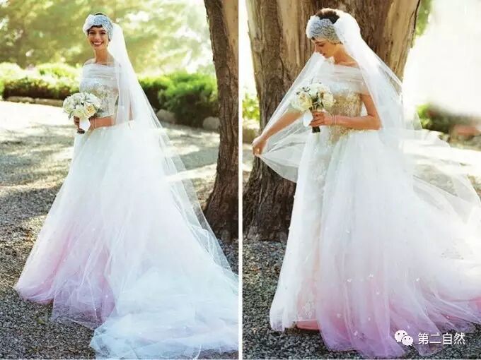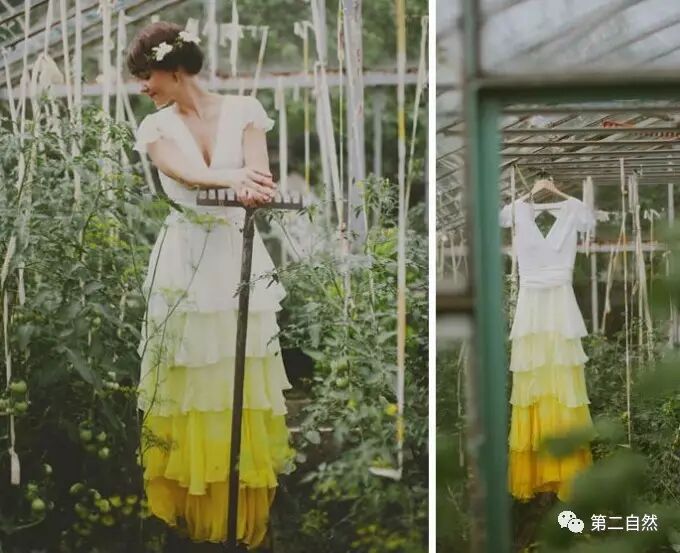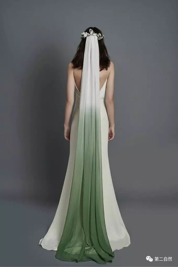 事实上,在Tumblr和Pinterest上,浸染的彩色礼服早已演变成一场场婚礼的时尚。艺术家Taylor Ann Linko在尝试过浸染后用喷枪喷色将自己的结婚礼服染出晚霞般的绚烂色彩,就好像艺术作品一样。