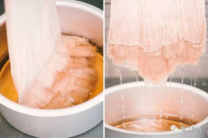 >>>> 小心将整块布料从盆里移开,让它滴一会儿,然后用冷水和温水交替冲洗漂洗,直到布料在水里不再脱色。