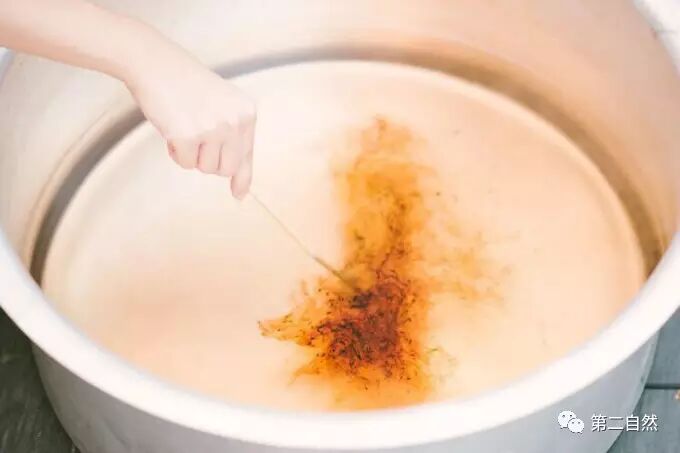 >>>> 将织物从底部浸渍约三分之一在盆里,等待30到45分钟,不时观察一下浸染颜色的程度。不同面料的上色效果有所不同,根据自己对颜色的深浅偏好决定浸染的时长,如果想要染得颜色深一些,则浸久一点。