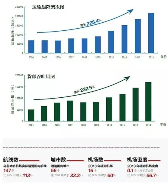 根据国际机场协会的相关研究,每百万航空旅客吞吐量可以产生经济效益总和18.1亿元,相关就业岗位5300个。按此计算,仅2013年,全疆机场就完成旅客吞吐量1987.9万人次,为新疆GDP贡献了359.8亿元、提供就业岗位10.5万个。