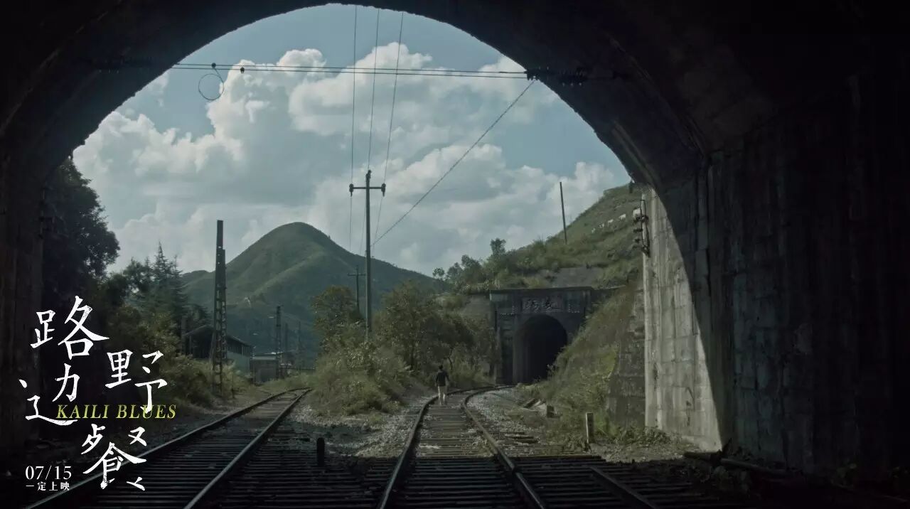 片名《路边野餐》的打出放在一个从隧道横摇的长镜头中间,