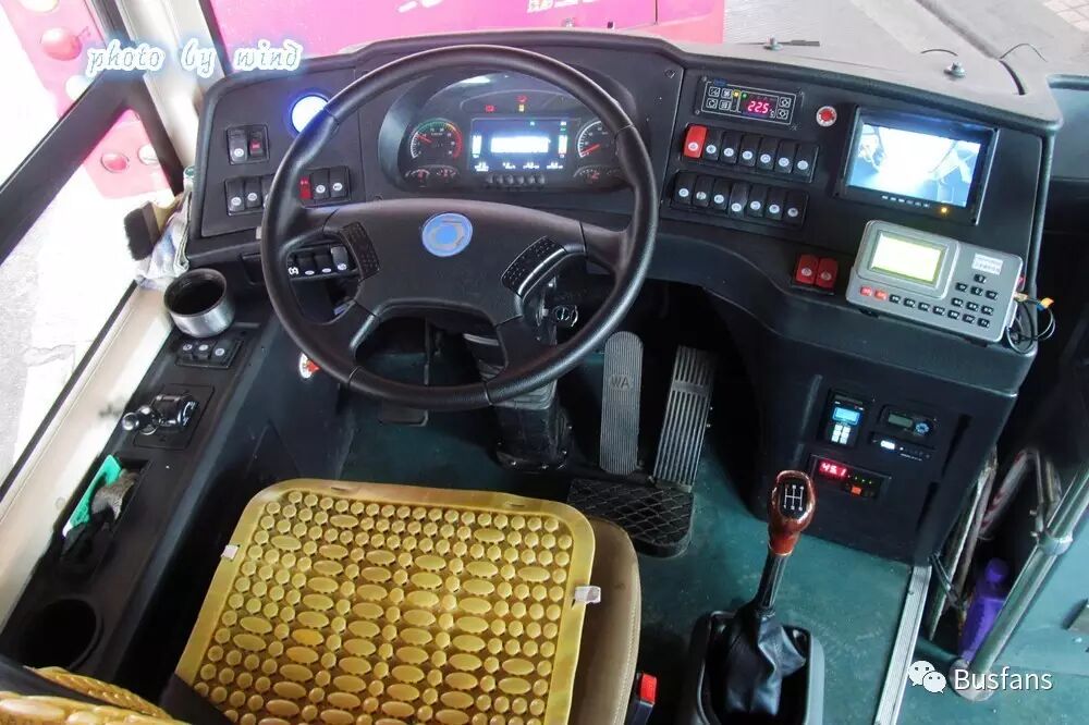 看看司机位,简直和13款白马车完全不同,本来以为9系造型会搭配9系造型专用的仪表台,谁知就换了个新设计!除了造型不同之外,大部分配置都和白马同款车不同,例如CAN总线从威帝换成现在珍宝偏爱的汉纳森。刹车总阀从卡福换成万安。仪表台造型再加上CAN总线的设置导致了车门开关的按钮设计得越来越远,越来坑爹,真是开个门都辛苦。