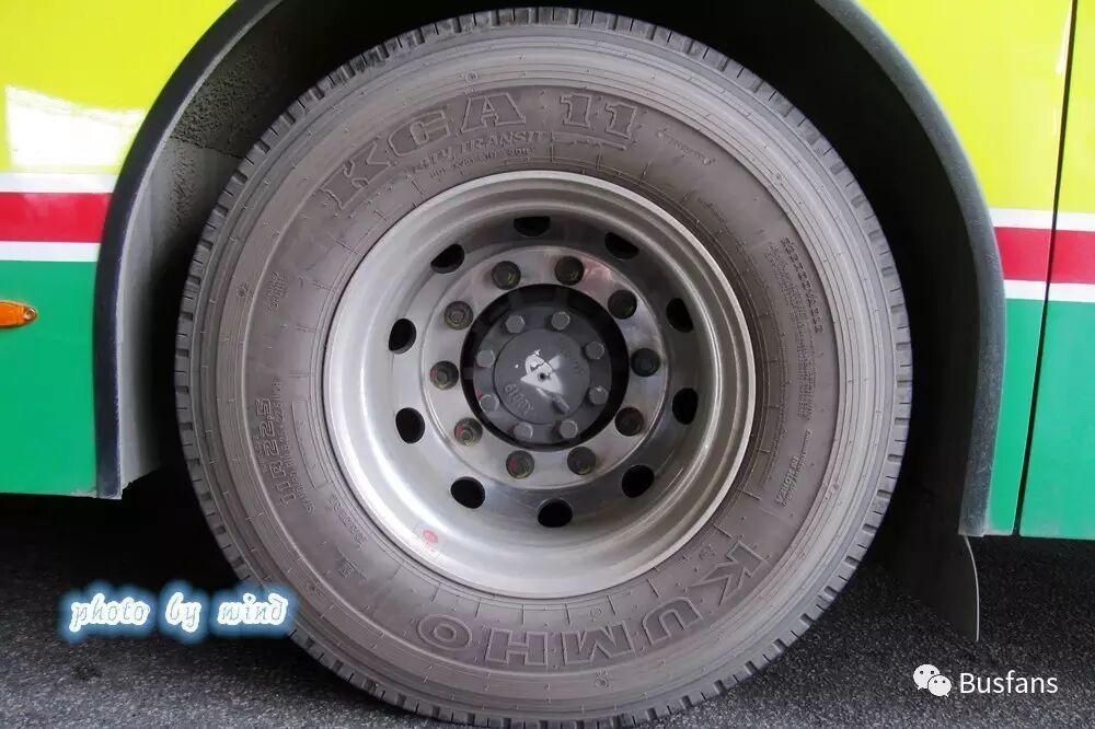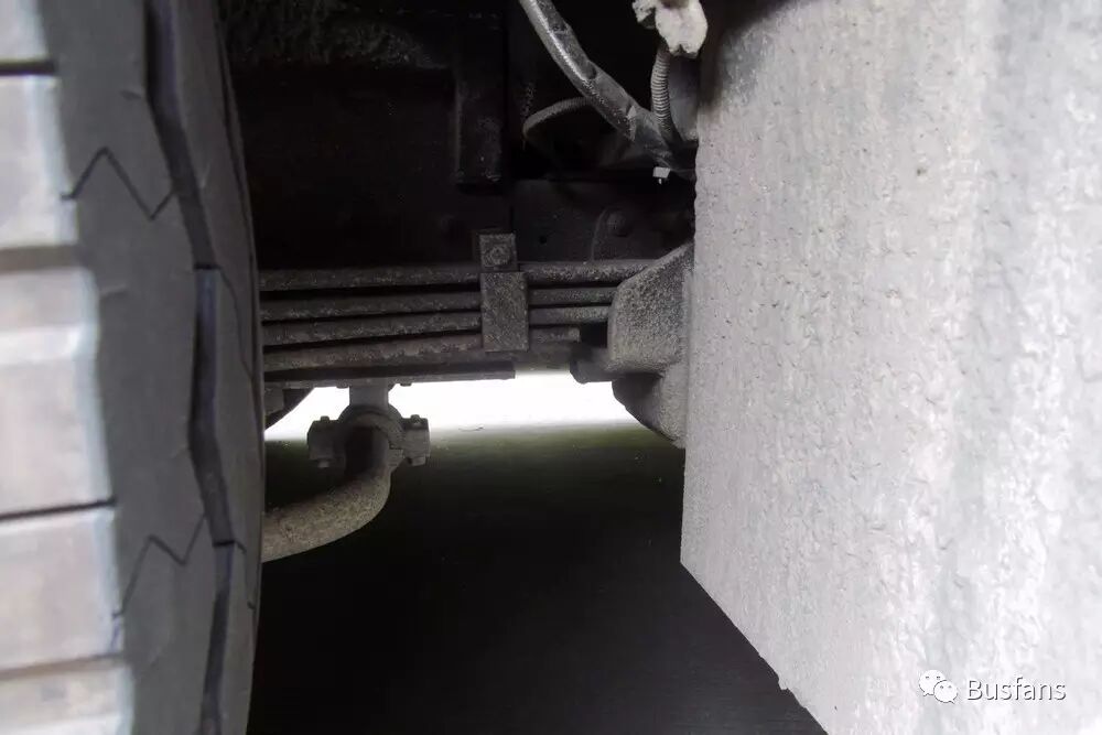 底盘行走方面,这款车选用福州新福达代工的SLK6119U5N5三类底盘,地台采用二踏设计,悬挂前四后五钢板悬挂。该车前后车桥均采用东风德纳出品,前桥采用双推式刹车夹碟刹,后桥采用鼓刹,配有ABS系统。底盘看起来和白马车差不多,但是白马车前后桥都是碟刹的!当然啦,不是说前碟后鼓不好,之前都说过,大部分情况之下鼓刹都不差,前碟后鼓也是一个又安全又实惠的选择。另外,可以看到,这批车配备了亮铝轮圈,但是装了亮铝轮圈又不舍得配套筒式螺丝,搞不清是什么套路。同时,这款车是珍宝第一批配有亮铝轮圈的车。