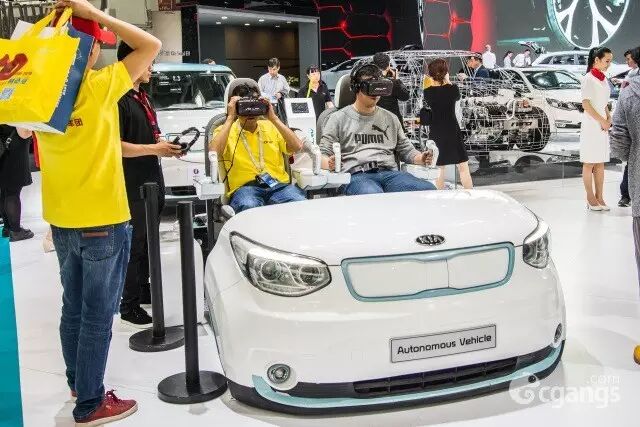 在这届北京车展现场,你还会发现很多VR技术的应用,比如奔驰smart展位,专门为观众提供了定制版VR眼镜,体验者可以坐在车里,戴上VR眼镜开启新世界(在VR世界里,驾驶新车)。以及在起亚展位,专门为车迷设置了虚拟试驾,参观者可以真实地享受新车驾驶体验!相比实物展览,VR技术可以向观众展示更多的产品信息,而且非常有引导性。