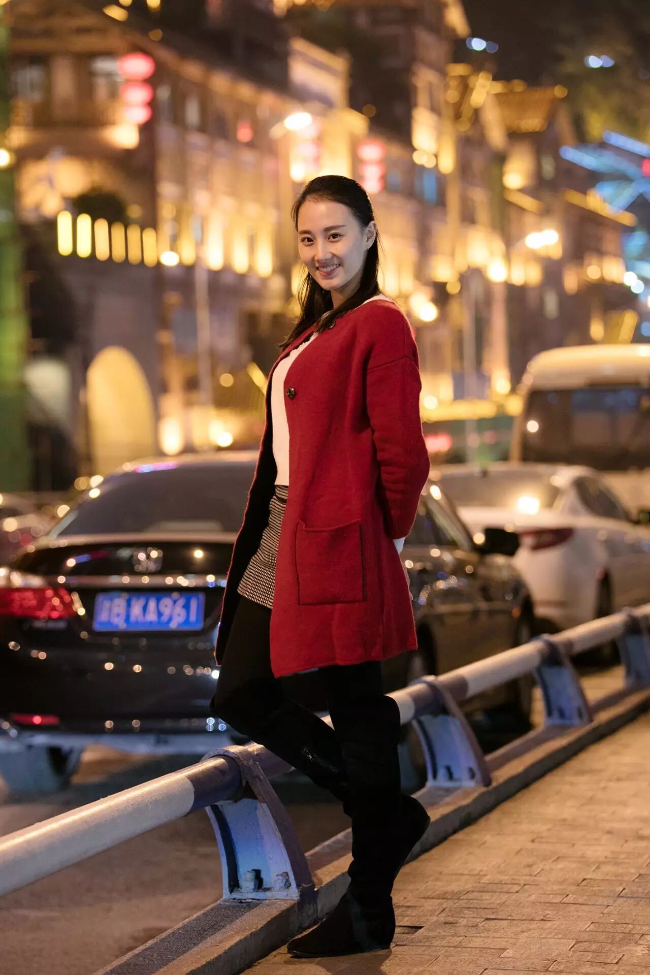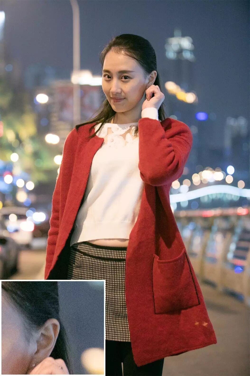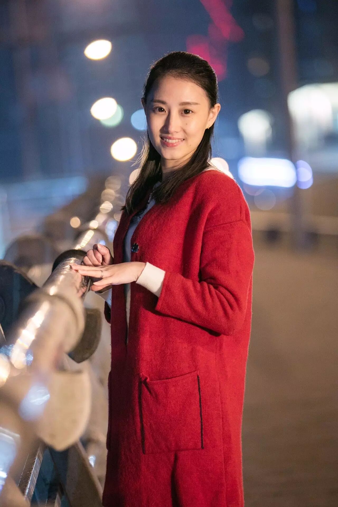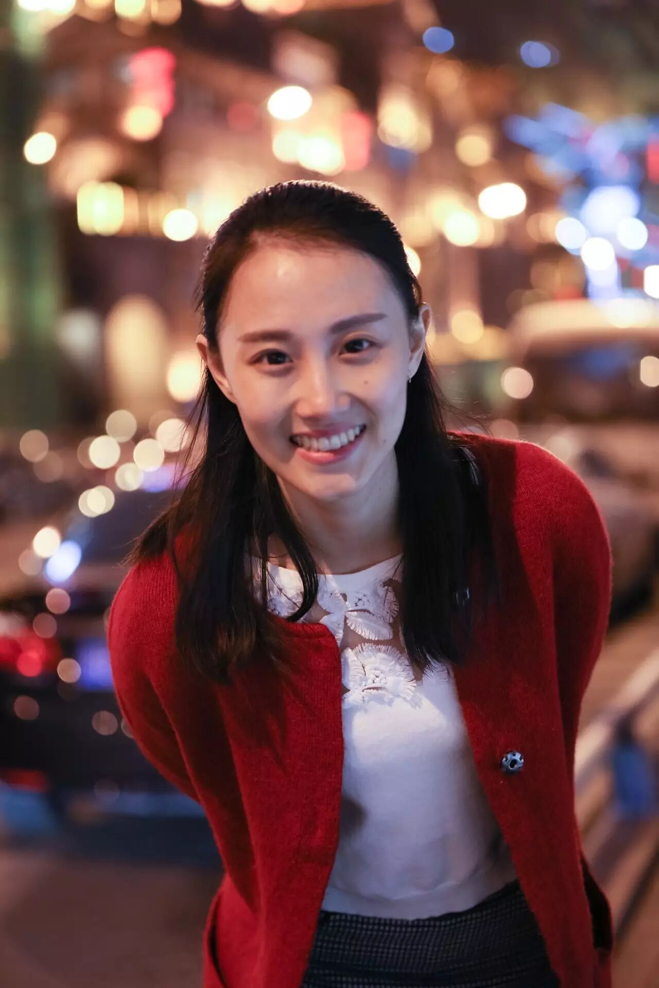 一张满意的夜景人像:应该有背景光斑,人物轮廓清新,发丝有细节。同样前景也应该有光源,让肤色均匀。比如这样的:
