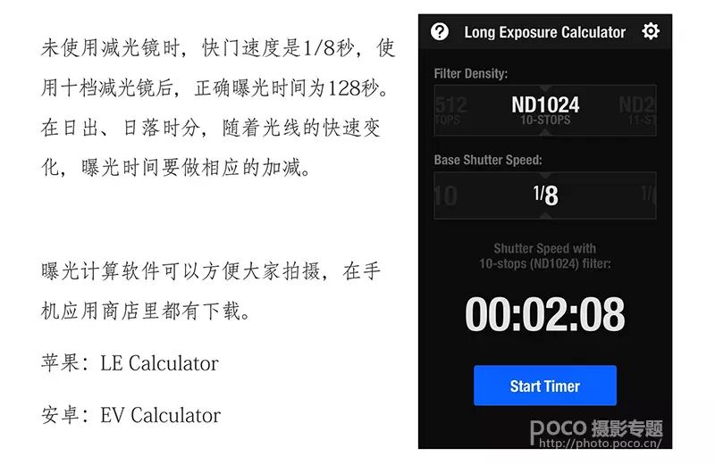 在慢门拍摄之前,需要先拍摄一张曝光正确,明暗部细节丰富的照片。以这张照片参数去计算使用减光镜之后的正确曝光时间。