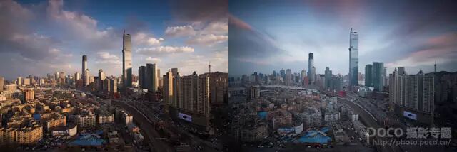 雨过天晴后,天空中的云彩非常漂亮。云彩移动速度较快的情况下,使用减光镜拍摄慢门,地面建筑之间的光影就会丢失,从而导致画面缺乏立体感。